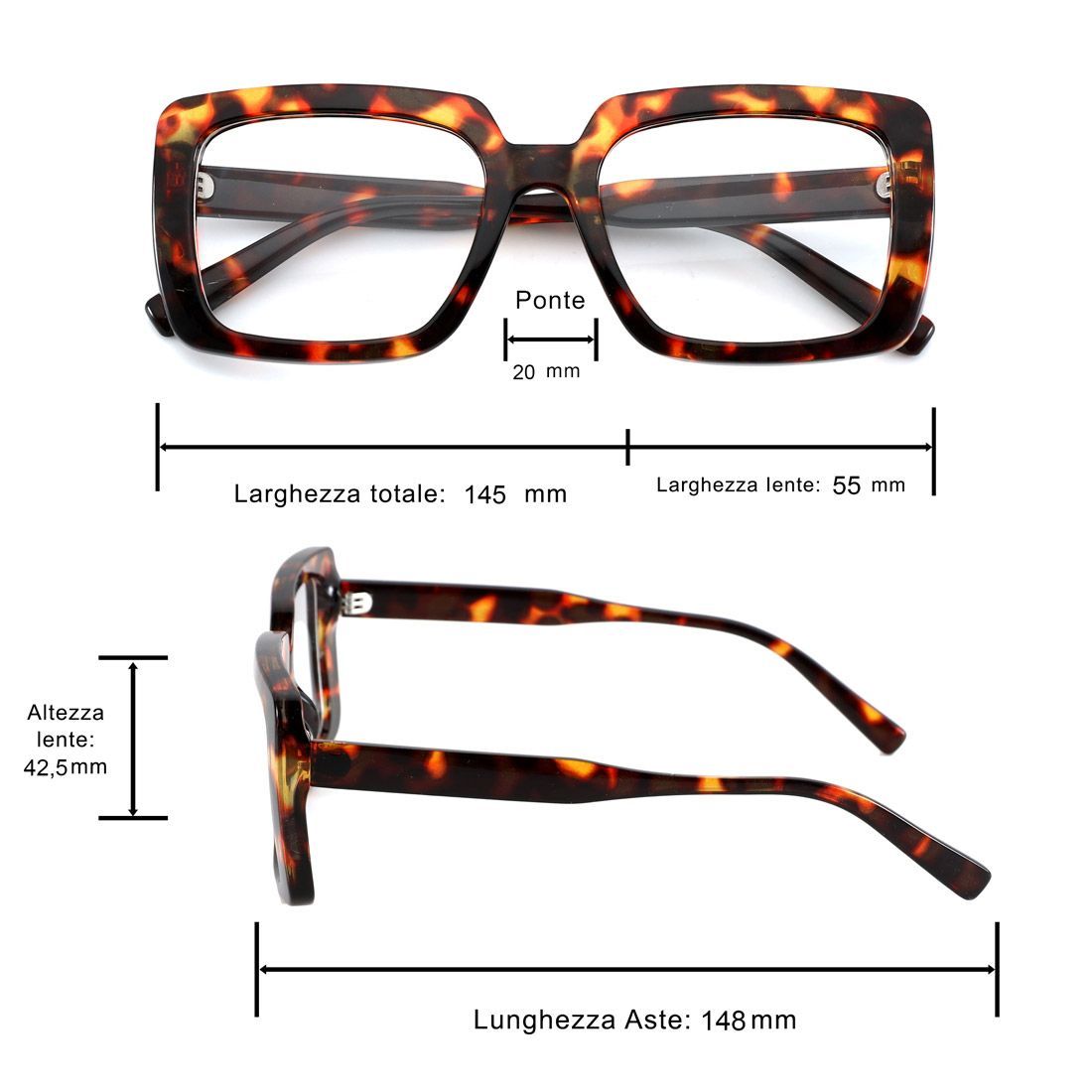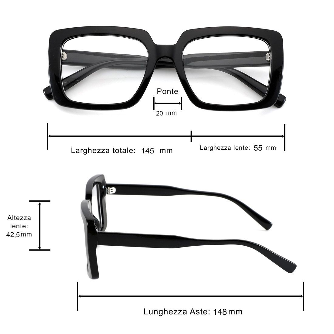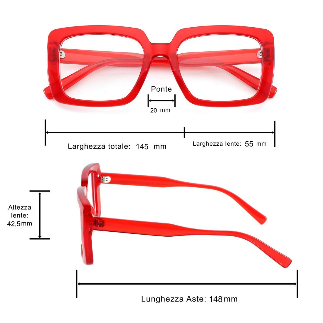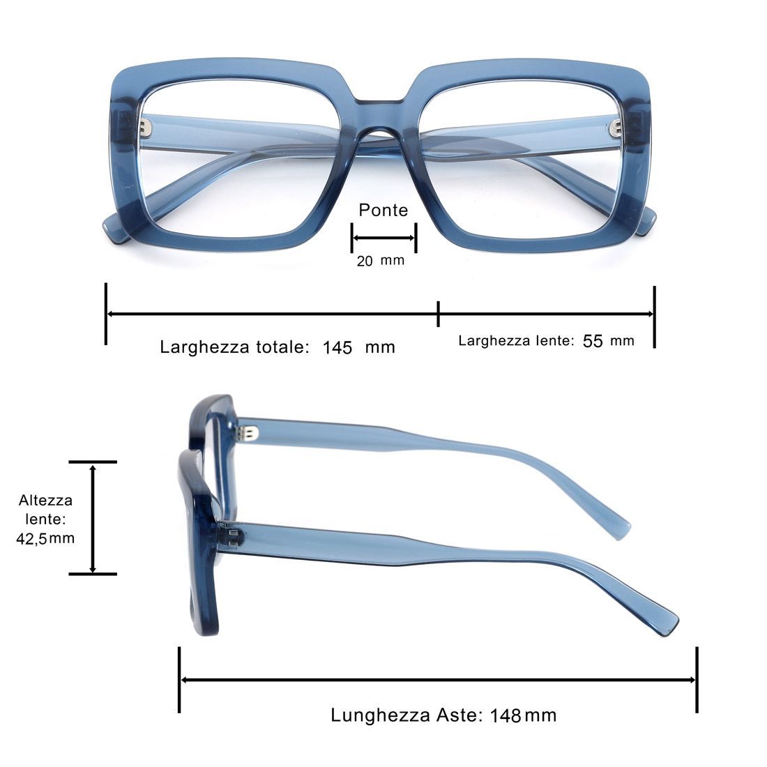 - Montatura da donna oversize in policarbonato di alta qualità